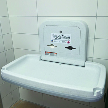 Table a langer horizontale à fixation murale en polypropylène. Cette table a langer murale est renforcée et est équipée d’un châssis monocoque en acier pouvant supporter un poids allant jusqu’à 90 kg et d’un plan à langer contenant du Microban® antimicrobien. Des vérins à gaz assurent une fermeture et une ouverture en douceur. Double réceptacle à lingettes cadenassé pour diminuer la consommation et décourager le vandalisme éventuel. Réf. 4926
